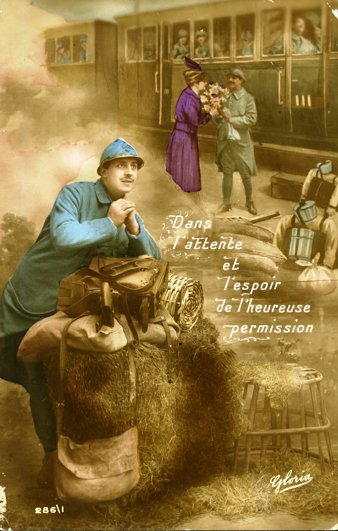 « Dans l’attente et l’espoir de l’heureuse permission ». Carte postale de Maurice Leroy, 83e RI.