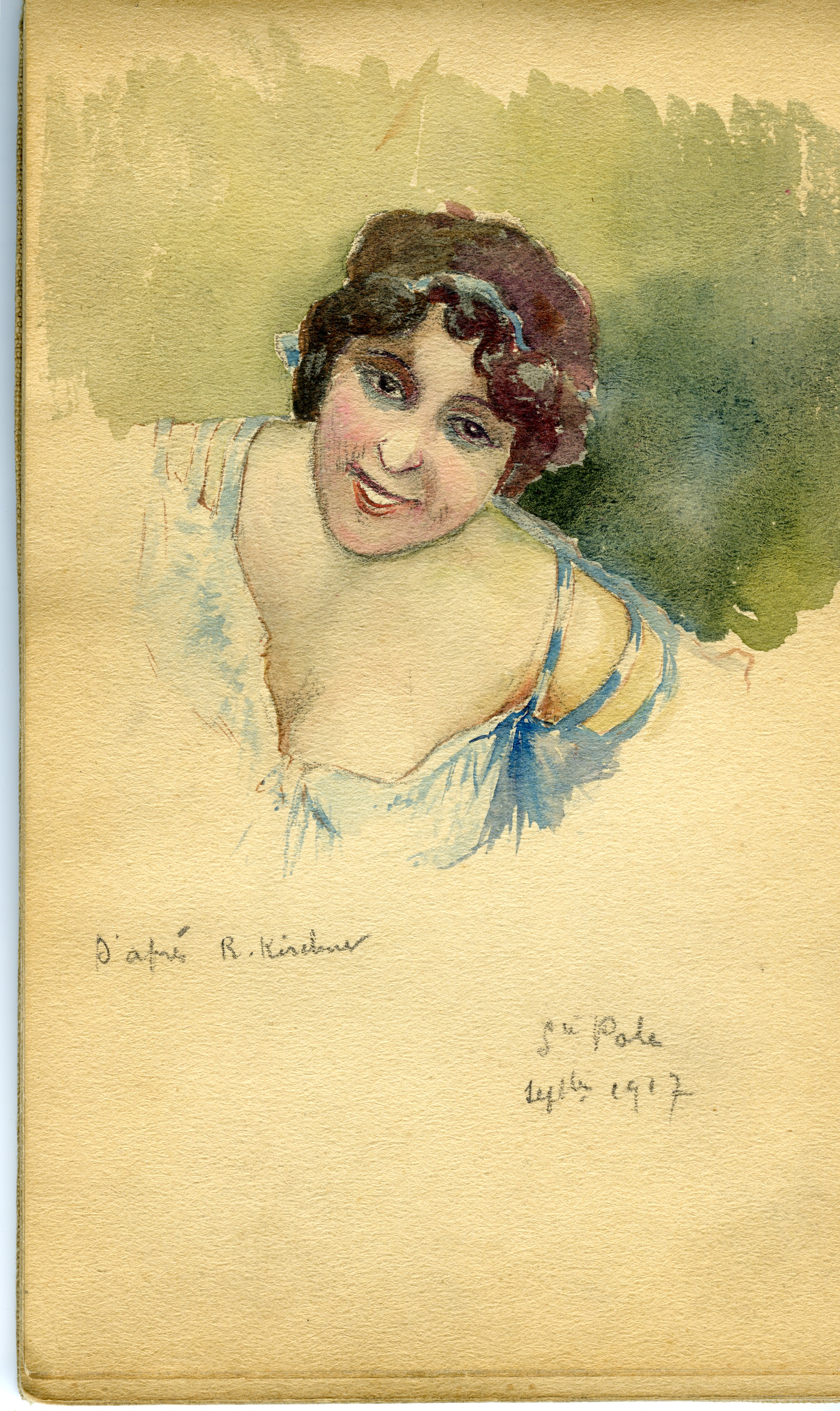 Tête de femme. Septembre 1917. Dessin du capitaine Charles de La Rivière. Septembre 1917.