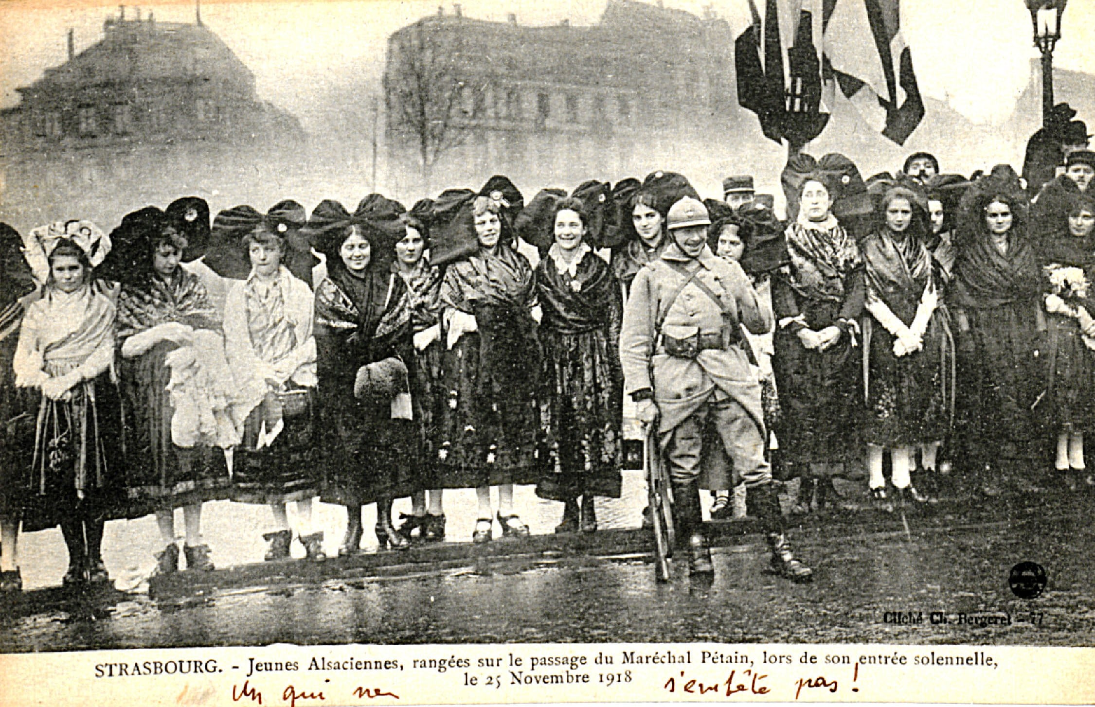 Entrée de Pétain à Strasbourg le 25 novembre 1918. Carte postale photographique envoyée par le capitaine de Béchillon, 47e RI.
